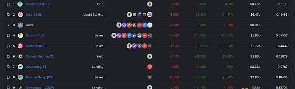 DeFi項目鎖定資產前十排名及鎖倉量數據來源:defillama