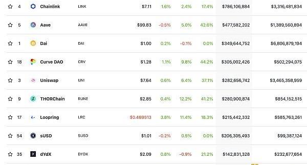 DeFi項目鎖定資產前十排名及鎖倉量數據來源:defillama