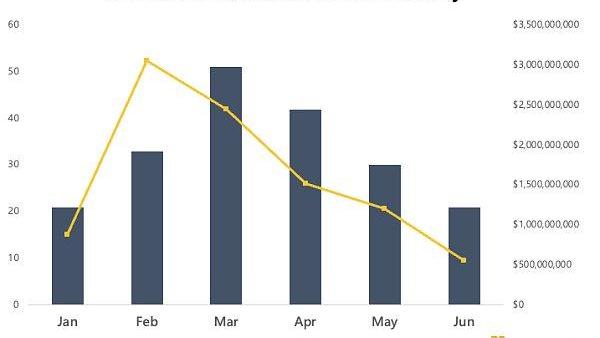 并購交易在2022年上半年的6?個月內分布相對均勻。Web3和GameFi公司是這些并購交易中的突出亮點。