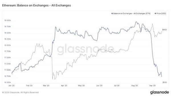 根據Glassnode提供的最新網絡數據顯示,在過去的幾周中,集中交易的以太坊余額已經大幅下降。實際上,上述數據顯示,以太坊交易余額從18,750K下降至1,675K左右,撰寫本文時,以太坊交易所的余額已經降至了2020年來最低水平。