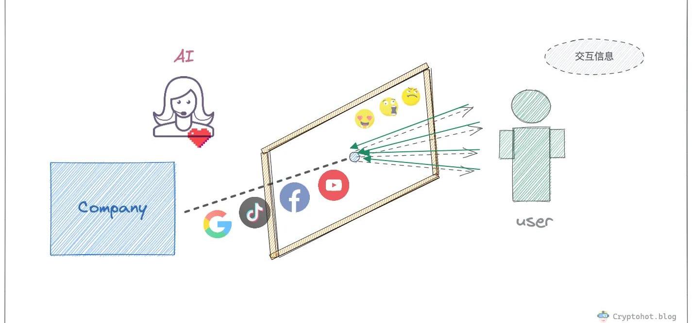 此時Web2.0實現了窗口右側的人類對左側虛擬世界的探索,而虛擬世界則通過人類帶過來的信息灌輸給機器并不斷訓練和學習,目前人們普遍認為此時Web2.0已經發展到了極致,互聯網的形態已經無限接近Web3.0時代。