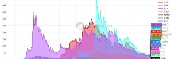 這張圖表給出了一些數字。排名前5的其中2種類別是Meme和DEX,這兩個類別嚴重的向SHIB傾斜(1300萬%!)。其他3個類別,分別為——粉絲參與、NFT、游戲——它們仍然帶來了超過1,000%的回報。