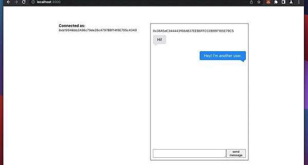 如果你的聊天智能合約發布了消息,它們應該在聊天框中可見。否則,讓我們繼續允許用戶發送消息。以下是目前為止你應該看到的: