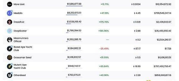 24小時內銷售漲幅前十的NFT數據來源:NFTGO