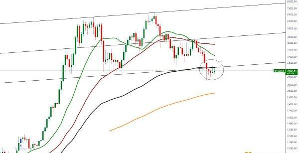 ETH自前期綠線死叉棕線后變一路下滑,如今也跌破了黑線支撐,并且這兩周反彈也是觸及黑線1950-2000便回落,和BTC走勢進程類似,那么后面就要注意這一帶跌破反抽過程完成后繼續下探風險。