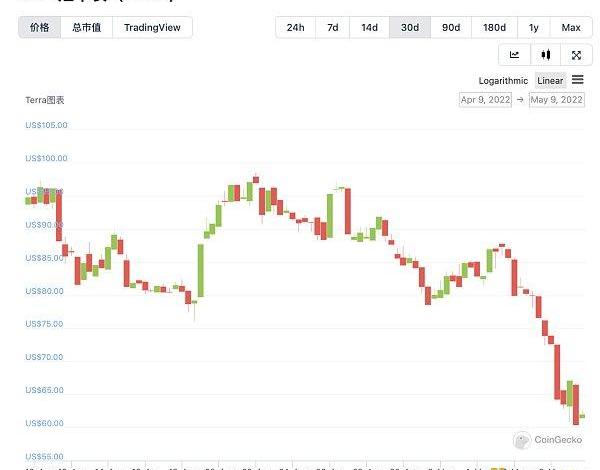 XRP/HKD-0.49%5月9日,據CoinGecko數據顯示,LUNA持續下跌,一度跌破60美元最低至59.94美元,目前報價61.75美元,最近24h跌幅5.1%,距離歷史最高點跌幅近50%。UST曾一度跌至0.98美元,現報價$0.997美元,最近24h跌幅0.3%。