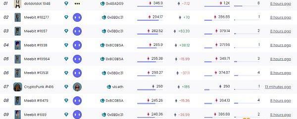 24小時內銷售漲幅前十的NFT數據來源:NFTGO