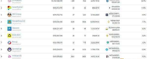 1900/1/1 0:00:00DeFi數據 1.DeFi代幣總市值:1370.61億美元 DeFi總市值數據來源:coingecko2.過去24小時去中心化交易所的交易量:581.