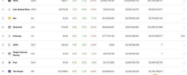 DeFi項目鎖定資產前十排名及鎖倉量數據來源:defillama