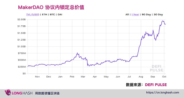 鎖定在 MakerDAO 中的總價值直逼 20 億美元