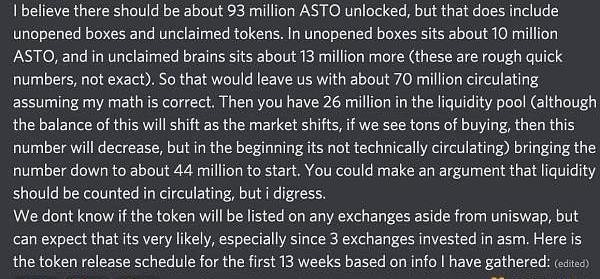 發行時$ASTO代幣有5500萬的流通供應量。目前拍賣價格為0.36USDC。考慮到項目是這個領域的先行者,擁有技術護城河,ASM將提供成為許多NFT的基礎設施,加上團隊和信念,我認為是這是一個嚴重低估的價格。