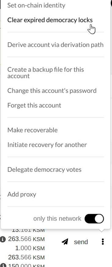 如果你沒有看到清除過期民主選票的選項,則可能是鎖定已經很舊了。或者,如果你使用的是Ledger硬件錢包,你將無法從UI發出批量解鎖操作。