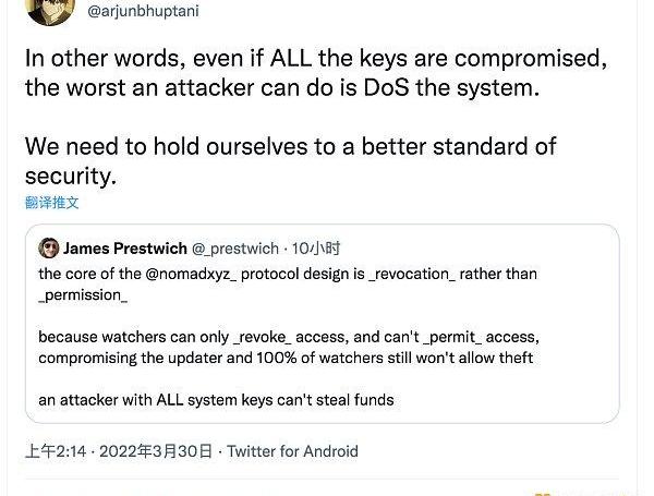 目前,盡管Stargate已經改成了2/3多重簽名機制?,但其依然有可能會遭遇類似RoninNetwork這樣的管理密鑰攻擊風險。