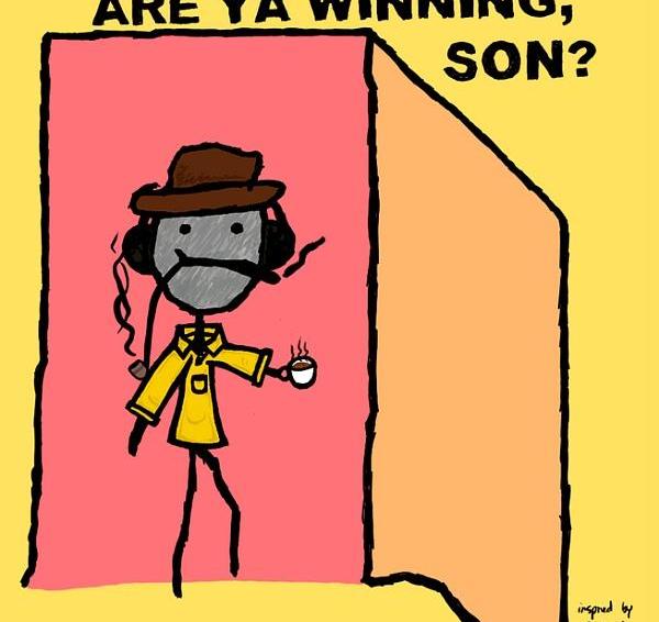 這位老豆看上去想要關心愛打游戲的兒子。但在他的腦袋里,游戲嘛,無非就是“輸”和“贏”之分。