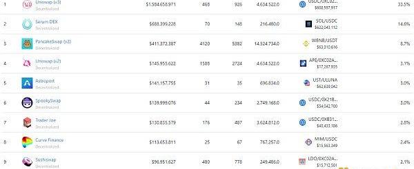 2.過去24小時去中心化交易所的交易量:47.24億美元