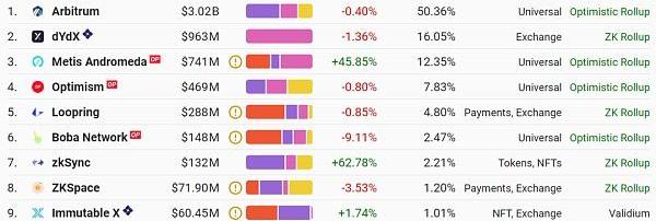 各公鏈TVL占比情況