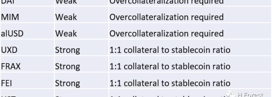 FEI:FEI在穩定性方面可能是最弱的,因為a)支持FEI的質押資產本身具有較大的波動性,而不像USDC/USDT這類穩定資產b)缺乏超額抵押緩沖c)缺乏直接套利機制