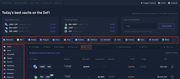 Coindix是一個實時檢測DeFi收益的網站,我們同樣可以在其中找到各鏈上收益最高的Stablecoin收益策略。
