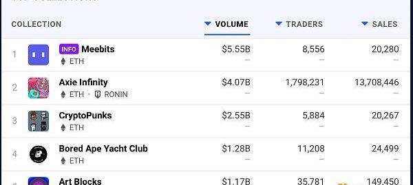 按銷量計算的頂級NFT收藏品