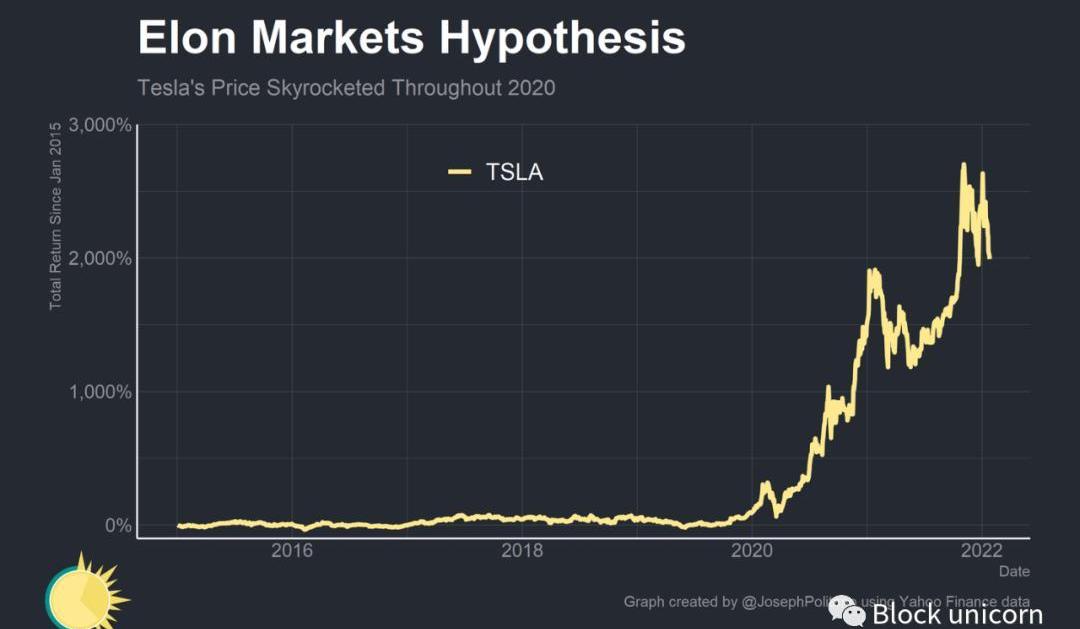 Elon的社交媒體地位使他成為整個傳統和加密金融世界的市場推動者,他關于GameStop、狗狗幣、比特幣和他自己的公司特斯拉的推文引起了金融市場的巨大、即時的反應。許多加密項目都是為了碰瓷Elon推特上的明確意圖而創建的,其他上市公司的CEO試圖盡可能的將自己與Elon的社交媒體名聲聯系起來。