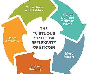 在比特幣的例子中,反射性屬性更加明顯,因為它不僅僅包括資產的被動持有者,還包括積極增加網絡安全的礦工。隨著越來越多的人相信比特幣具有優越的貨幣屬性,并選擇將他們的財富儲存在其中,需求也隨之增加。這反過來又會導致價格上漲。隨著更高的價格帶來更高的利潤率,礦商就會受到激勵,增加資本支出和計算能力。比特幣挖礦的計算能力越強,網絡的安全性就越高,這反過來又使比特幣資產更具吸引力,再次吸引更多用戶和投資者。