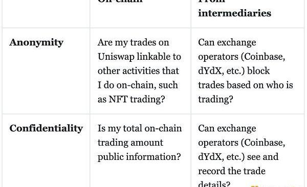 當然,對于上述任何一個問題,答案是你的信息被永久地記錄在鏈上并傳輸給中介機構。有了這樣的認識,我們現在就可以深入了解鏈上和中介區塊鏈應用的隱私是什么。