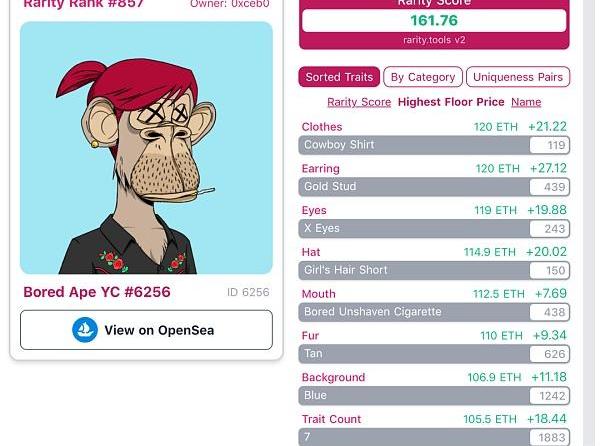但對于大部分買高價NFT彰顯身份的大戶來說,買這只所謂排名第二的猴可能還不如買金皮膚、鐳射眼,這些帶有具備高識別度的顯性元素的猴。