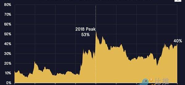第一個巨大的不同是2017年的反彈完全是炒作。2017年年中,全世界都愛上了新發行的代幣——首次代幣發行(ICO)。它們自2013年以來一直存在。PanteraCapital在2015年8月在以太坊上制作了第一個代幣——Augur。2017年下半年是ICO熱潮。這些項目中的大多數都沒有用,巨額資金進入市場。當比特幣在2017年12月達到頂峰時,它僅占行業市值的39%,而以太坊僅為12%——非比特幣+以太坊的市場份額達到53%。