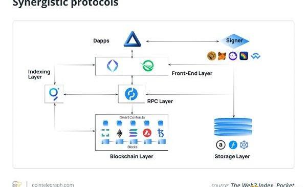 每個特定于應用程序的中間件協議都在堆棧的不同層提供獨特的服務。例如,PocketNetwork在RPC層,theGraph在索引層,Akash在云層,Livepeer和Arweave在視頻轉碼層,Filecoin和Storj在存儲層。因為它們位于去中心化的Web3開發者堆棧的不同部分,所以這些協議是互補的、協同作用的。例如,以下ETHOnline2020/2021黑客馬拉松項目同時使用了Pocket和TheGraph:ERCgraph、ProxyPoster、LiFinanceBridgeAggregatorAnalyticsandBalancerChat。