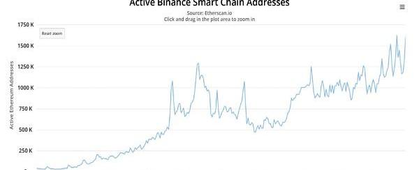 BSC:2021年1月1日的日活地址數為4.95萬,10月中旬峰值達到162.4萬,目前約為131.3萬,TVL190.7億美元。