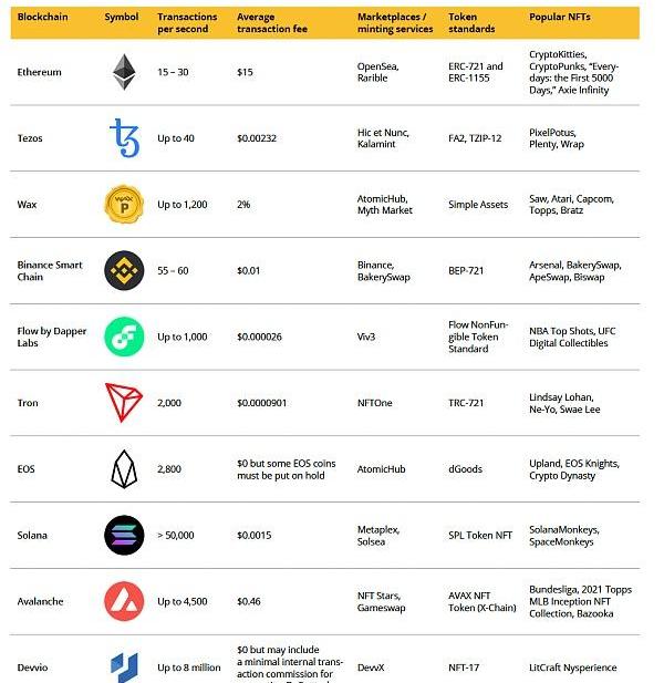 盡管交易費用通常高于NFT的價格,但Ethereum目前處理了超過80%的銷售額。然而,由于較低的交易費用和能源消耗,可替代的Layerone解決方案包括Flow、Tezos和Wax,正變得越來越普遍。