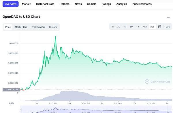 拋去炒作熱潮中的紅利滾滾,從更長遠的角度來看,OpenDAO玩法仍然處于非常初期的階段,甚至與2017年的通證發行潮類似,在沒有進行具體規劃的前提下,先發行通證,讓大家擁有OpenDAO的籌碼,在二級市場流通炒作,利用巨大的話題性和Fomo情緒,不斷抬升行業對該項目的關注熱度,一旦后續的技術開發和項目規劃沒有持續性的更新和維護,此類項目也最易淪為歷史車輪中的炮灰。正如OpenSea對此次空投的態度,“我們很高興看到社區找到了向前發展的創造性方法,但我們始終建議在申領通證之前研究合約和來源。”這也間接說明該項目或存在較大的安全隱患。目前來說,上線不到一周的SOS市場行情趨于平穩。