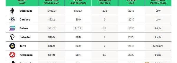 下圖提供了這些區塊鏈網絡的規模,以及建立在它們之上的DeFi生態系統。