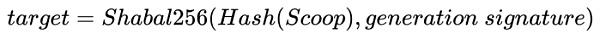 然后讀取plot文件,從所有的nonce中,獲得并處理scoop以計算目標哈希,定義target為目標哈希,則target可表示為: