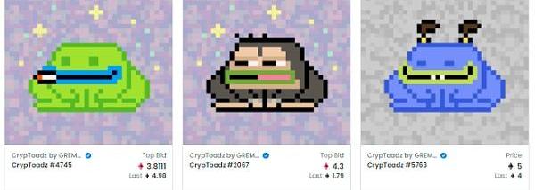 上圖:EvilKingGremplin創作的像素圖片NFT項目CrypToadz,截圖源自OpenSea