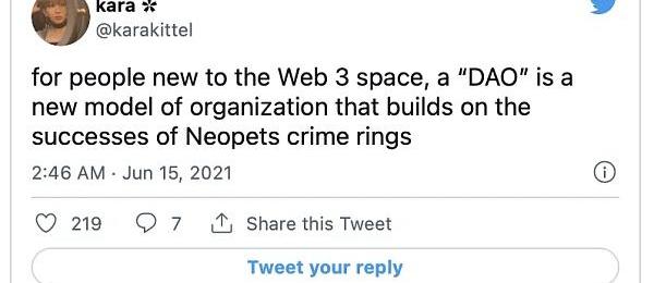 由于報告最后強調了民間社會組織、非政府組織、NPO和PCO的三個字母首字母縮略詞,因此自然缺少未來的一個:DAO。