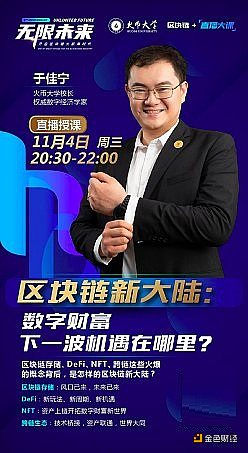 區塊鏈技術蓬勃發展,正成為數字經濟發展的關鍵基石。如果您想系統了解數字財富的新機遇和挑戰,敬請關注11月4日周三晚間20:30-22:00火幣大學直播大課