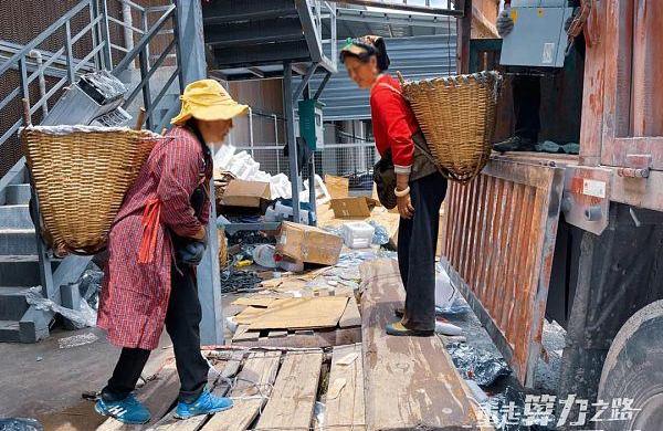 此時,嘉絨藏族婦女正背著背簍,一個挨著一個,將礦機放進背簍,緩步走向卡車再由人把礦機搬入卡車后斗,如此往復。他們神色平靜,并無多言,背著沉甸甸的螞蟻礦機挪步。盡管已入夏、穿著便裝,他們身上仍裝點了民族特色的飾品和設計,五彩繩與礦機風扇的多股絞線有幾分相似。