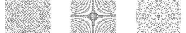 上圖:Larvalabs推出的生成藝術AutoglyphsNFT系列中的幾幅藝術品