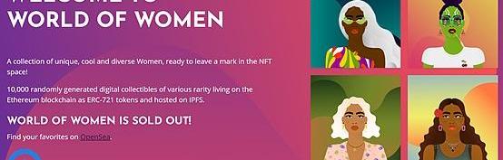 WorldofWomen也建立在以太坊上,以女性頭像為主題,由藝術家Yam創建,它是首批面向女性的加密收藏類頭像NFT項目之一。這些女性頭像以ERC-721標準生成,存儲在以太坊上,托管在IPFS上。