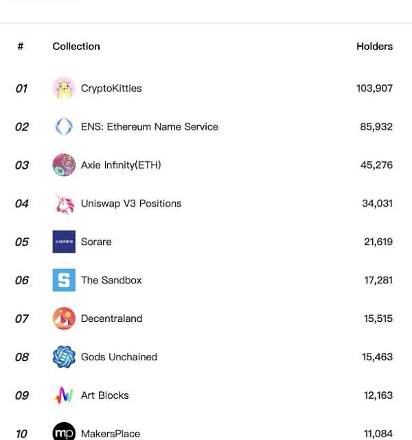 我認為NFT的火爆與GameFi的崛起可以說是互相借力。根據NFTGO數據顯示,持有人數Top10的NFT項目中有超過半數為GameFi游戲。