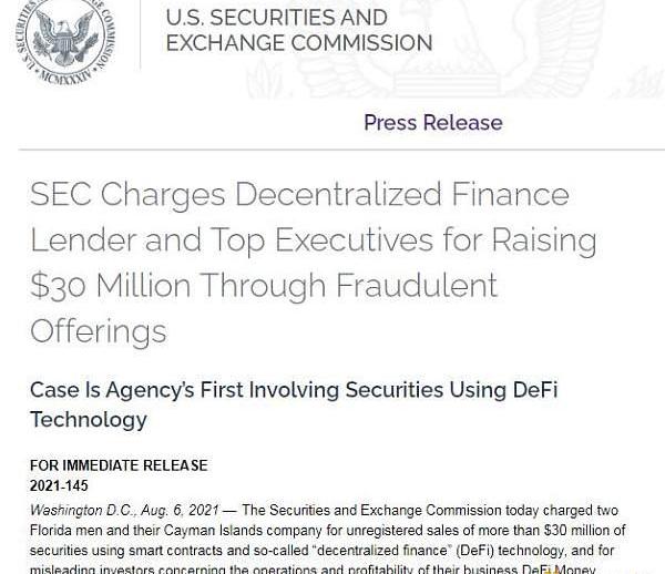 XRP/HKD-1.88%一家名叫BlockchainCreditPartners的區塊鏈信貸公司,剛剛遭到了美國證券交易委員會的嚴重指控。周五的時候,SEC向“去中心化金融行業”提出了首個指控——兩名公司高管被指利用以太坊區塊鏈向投資者出售加密貨幣,同時在盈利能力方面對客戶有所誤導。