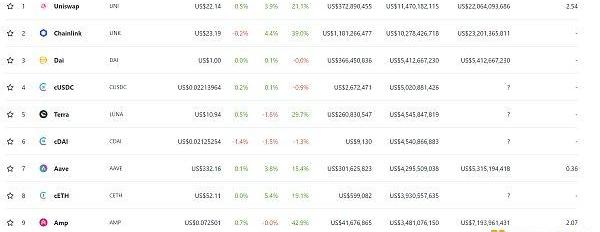 DeFi排名前十鎖倉量數據來源:DeFiPluse