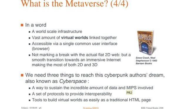 我最終跌跌撞撞地回到原來的帖子,然后發現了一篇題為《Solipsis:虛擬環境的去中心化架構》的演講稿,它是由一組研究人員在2008年編寫的,這篇演講稿提供了最有見地的元宇宙框架,即元宇宙根本上是由內容、元世界以及元星系組成。