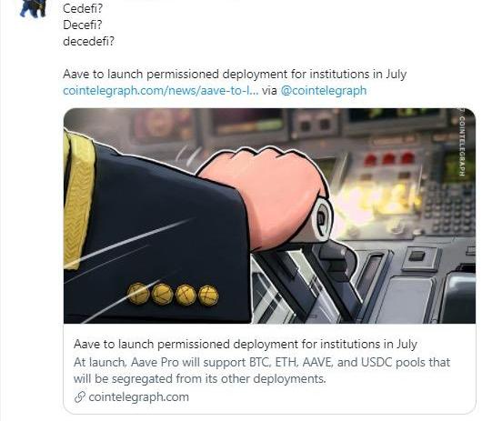 就像Yearn.finance的創始人AndreCronje所調侃的一樣:「這是Cedefi?還是Decefi?Decedefi?」由此產生的中心化問題都成為了機構參與DeFi的阻礙。