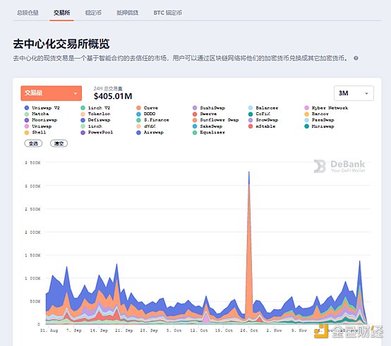 2、去中心化交易所24小時交易量:4.05億美元