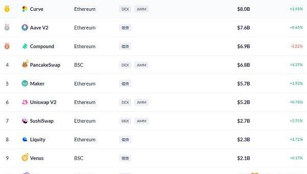 鎖倉量排名前十的借貸平臺排名來源:DeFibox