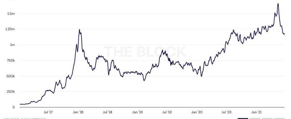 包括ERC20和721代幣的ETH交易數量(7日平均值;來源:TheBlock)