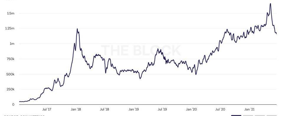 每日ETH轉賬額?(7日均值;來源:TheBlock)