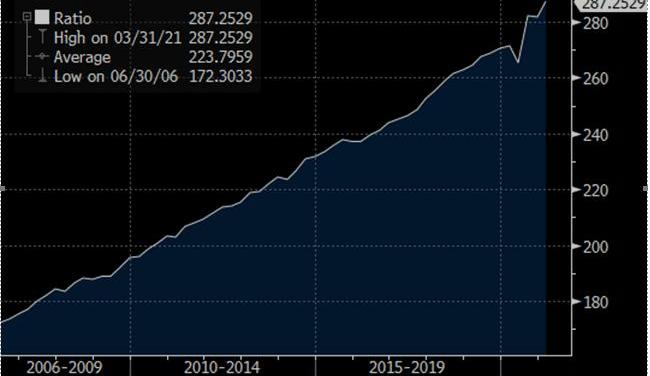 下面的圖表2則只是為了強調當前,我們的就業水平在歷史背景下的位置。盡管國家仍有大約1535萬人在申請失業救濟,但GDP的增長是多么令人難以置信。相比之下,在COVID危機之前,大約有160萬人申請失業救濟,而當時的GDP為21.8萬億美元。